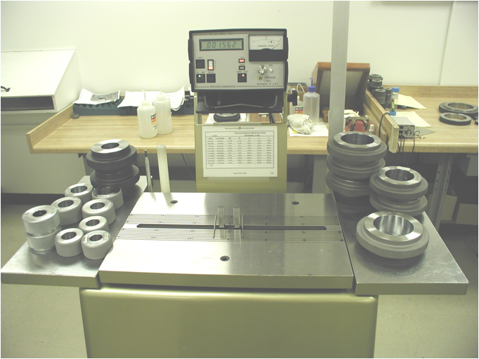 這是一臺在全球很多校準實驗室采用的標定環(huán)規(guī)的計量設備。可以用于檢定ASME X,XX,XXX級精度的環(huán)規(guī),相當于可以檢定國內(nèi)二等環(huán)規(guī)。 通過一整套完善的量值傳遞機構(gòu)可以快速精確的找到環(huán)規(guī)的直徑拐點,這其中其最大作用的是兩只消除了摩擦力影響的位移傳感器。這是一臺可以測量百萬分之一級內(nèi)外尺寸的儀器,同時可以用來測量一些高精度的盤類零件。
